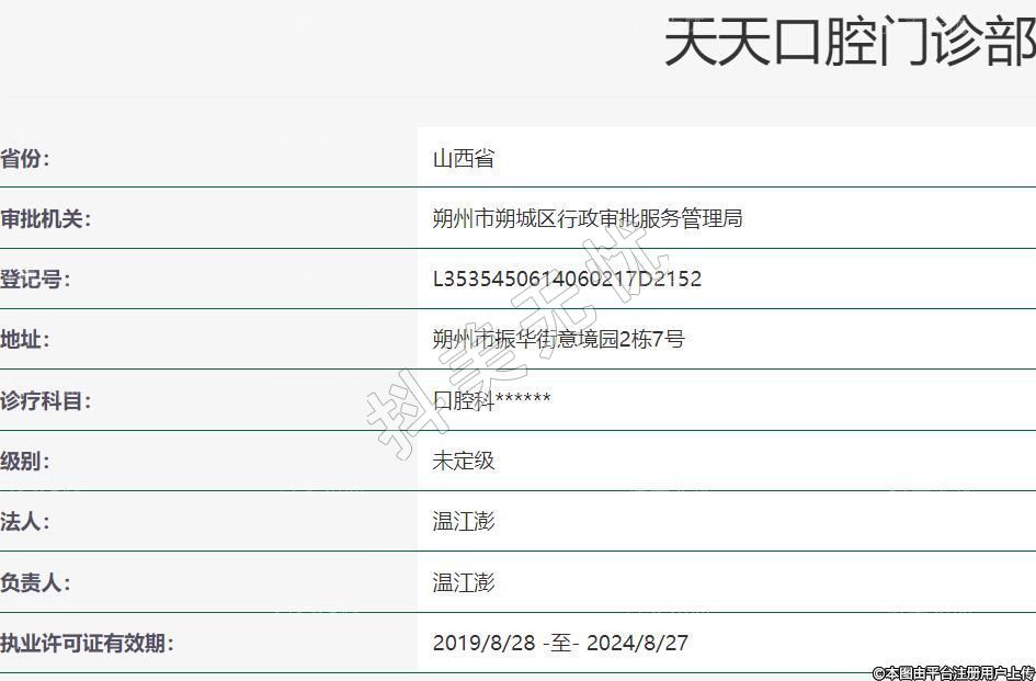 天天口腔位于山西省朔州市朔城區(qū)平朔振華小區(qū)意境園2棟7號(hào)1層商鋪,成立于2011年,科室范圍為口腔科。