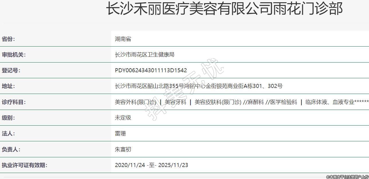 長(zhǎng)沙禾麗醫(yī)療美容有限公司雨花門診部