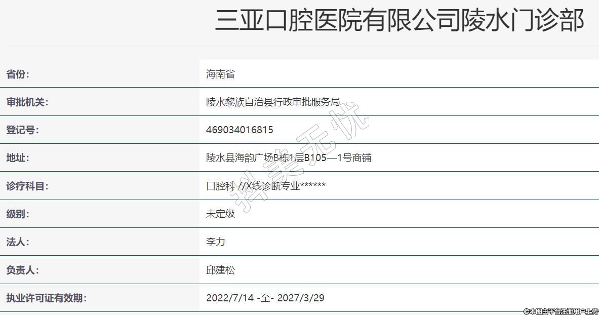 三亞口腔醫(yī)院有限公司陵水門診部,成立于2022年5月23日,位于海南省陵水黎族自治縣椰林鎮(zhèn)濱河南路B棟一層B105-1,經(jīng)營(yíng)范圍:許可項(xiàng)目:醫(yī)療服務(wù);診所服務(wù);醫(yī)療美容服務(wù)(依法須經(jīng)批準(zhǔn)的項(xiàng)目,經(jīng)相關(guān)部門批準(zhǔn)后方可開展經(jīng)營(yíng)活動(dòng))