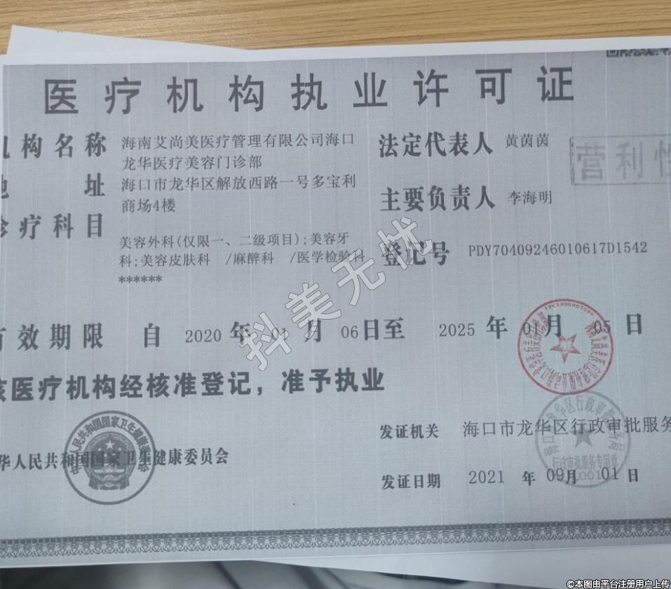 構(gòu)名稱:海南艾尚美醫(yī)療管理有限公司??邶埲A醫(yī)療美容門診部