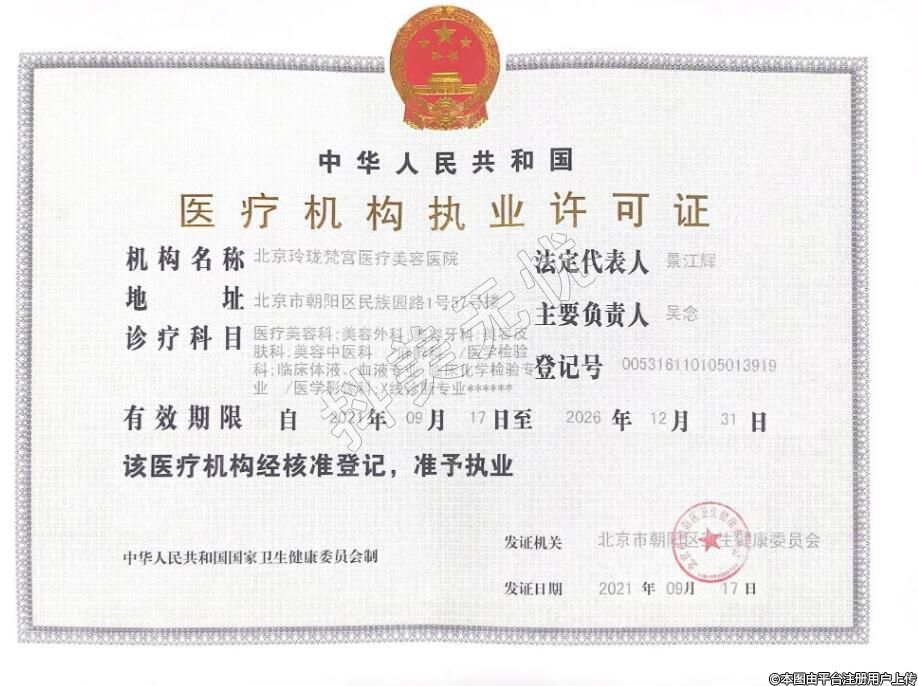 發(fā)證機關:北京市朝陽區(qū)衛(wèi)生健康委員會