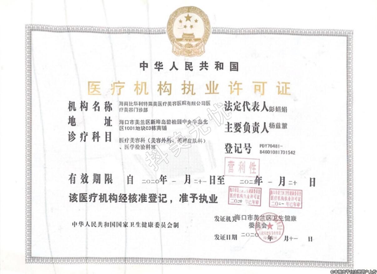 機(jī)構(gòu)名稱:海南比華利特菜美醫(yī)療美容醫(yī)院有限公司醫(yī)療美容門診部