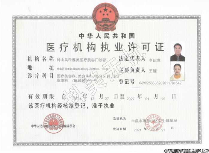 發(fā)證機關:六盤水市鐘山區(qū)衛(wèi)生健康局