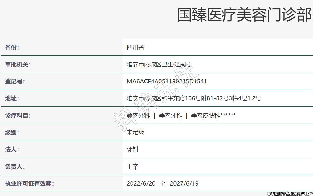 雅安國臻醫(yī)療美容地址:雅安市雨城區(qū)和平東路166號附81-82號3幢4層1.2號,診療科目:美容外科 | 美容牙科 | 美容皮膚科******