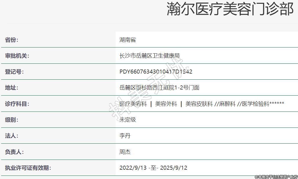 長沙瀚爾醫(yī)療美容 2022-09-02成立,地址:岳麓區(qū)銀杉路西江庭院1-2號門面,診療科目:醫(yī)療美容科 | 美容外科 | 美容皮膚科 //麻醉科 //醫(yī)學(xué)檢驗科******