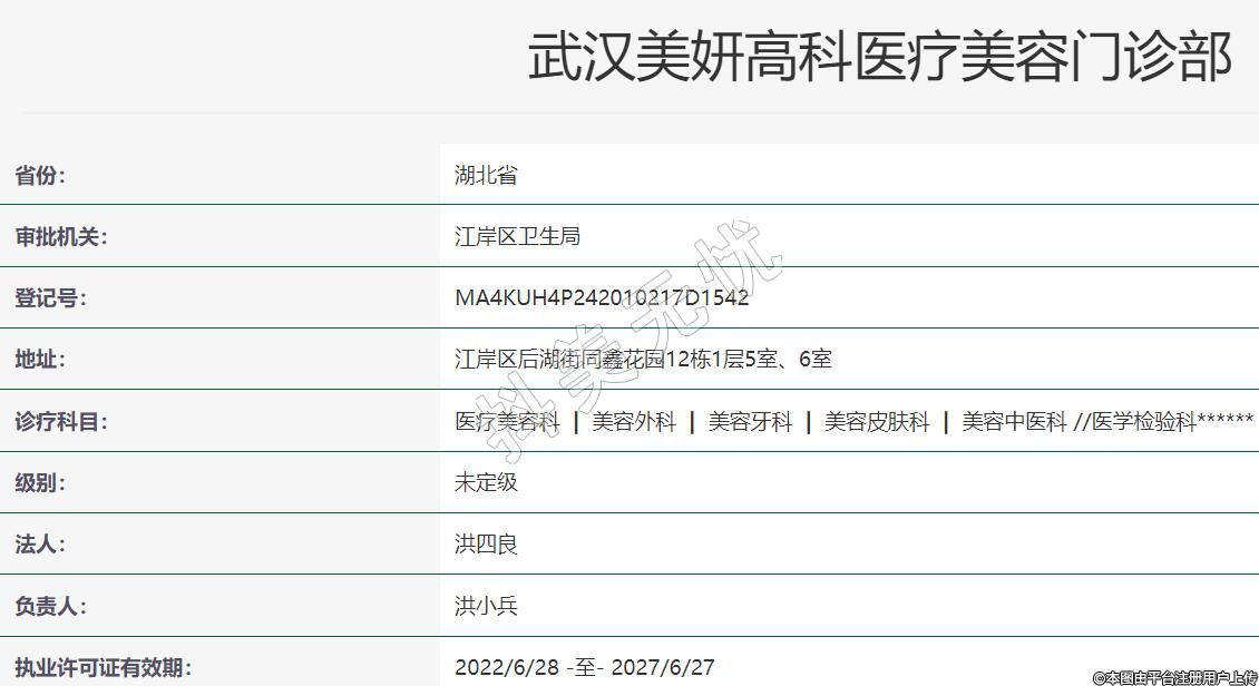 武漢美妍高科醫(yī)療美容2017-05-27成立,地址:江岸區(qū)后湖街同鑫花園12棟1層5室、6室,診療科目:醫(yī)療美容科 | 美容外科 | 美容牙科 | 美容皮膚科 | 美容中醫(yī)科 //醫(yī)學檢驗科******