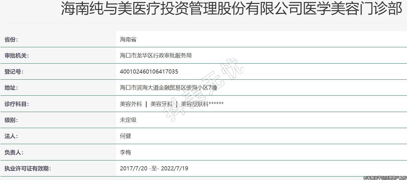 海南純與美醫(yī)療投資管理股份有限公司醫(yī)學(xué)美容門診部