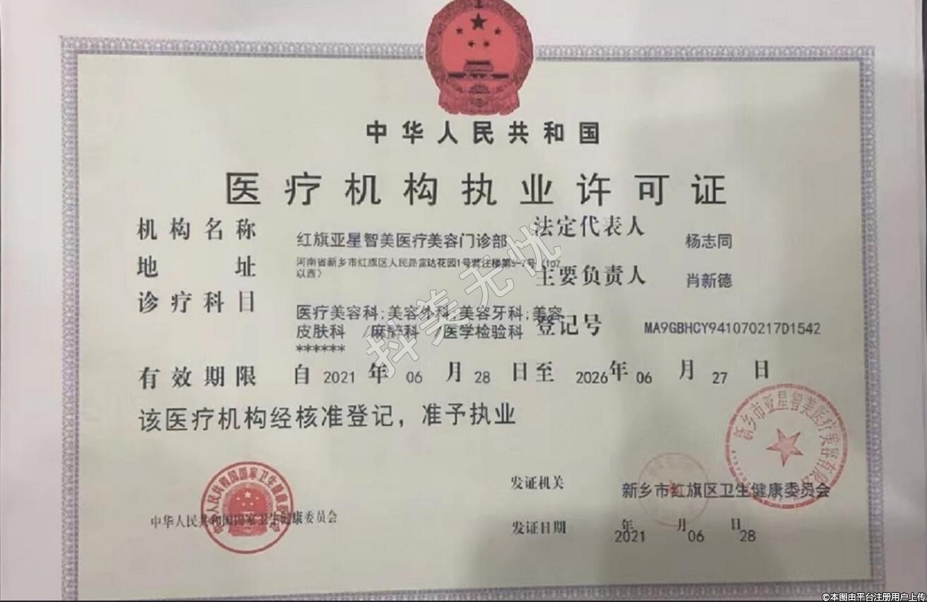 機構(gòu)名稱:紅旗亞星智美醫(yī)療美容門診部