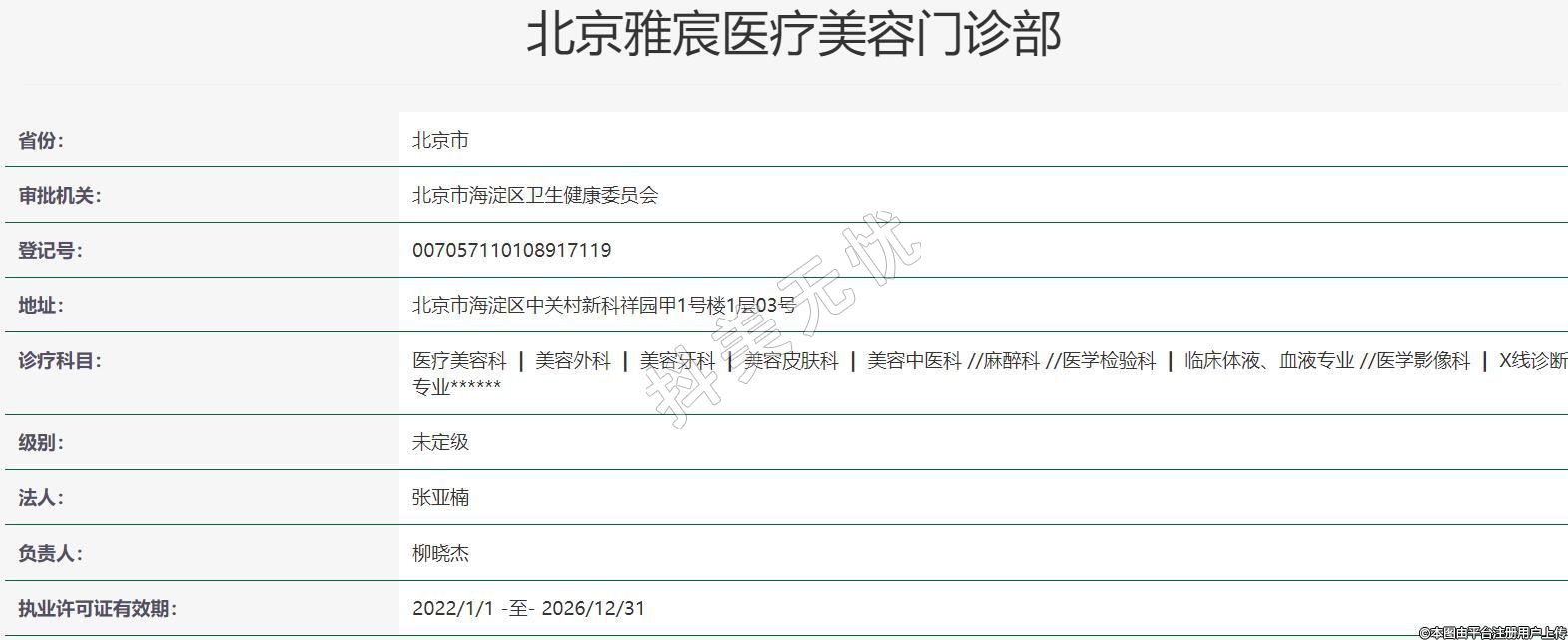 北京雅宸醫(yī)療美容2016年06月21日成立,地址:北京市海淀區(qū)中關(guān)村新科祥園甲1號(hào)樓1層03號(hào),診療科目:醫(yī)療美容科 | 美容外科 | 美容牙科 | 美容皮膚科 | 美容中醫(yī)科 //麻醉科 //醫(yī)學(xué)檢驗(yàn)科 | 臨床體液、血液專業(yè) //醫(yī)學(xué)影像科 | X線診斷專業(yè)******