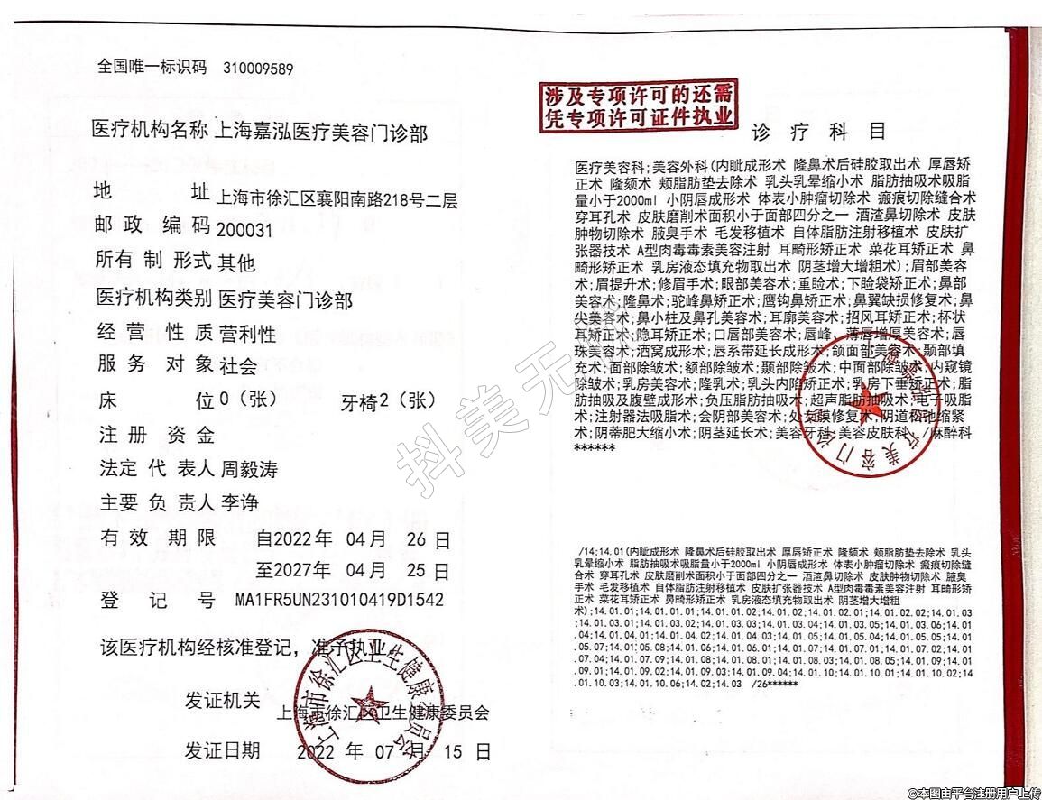 發(fā)證機關:上海市徐匯區(qū)衛(wèi)生健康委員會