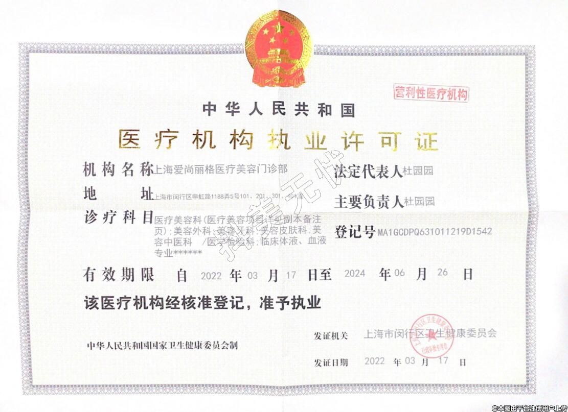 機(jī)構(gòu)名稱:上海愛(ài)尚麗格醫(yī)療美容門診部