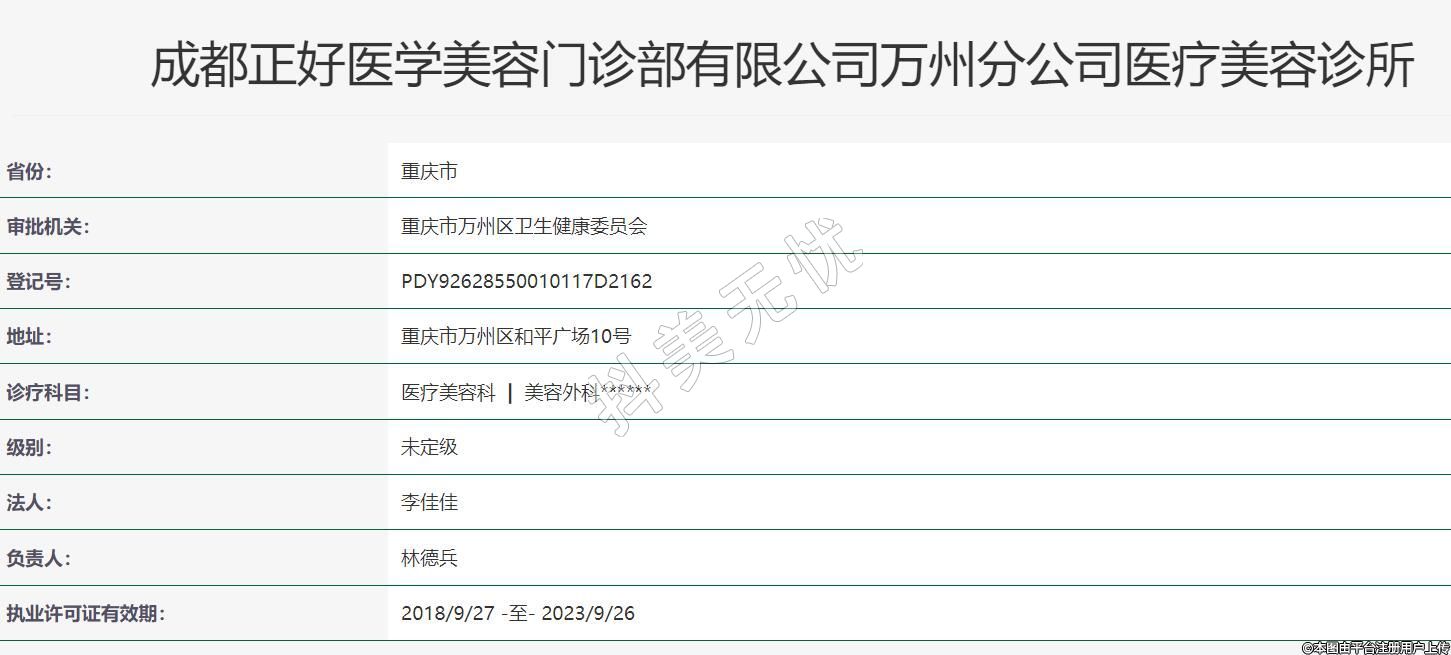 重慶正好醫(yī)學美容2018-03-29成立,地址:重慶市萬州區(qū)和平廣場10號,診療科目:醫(yī)療美容科 | 美容外科******
