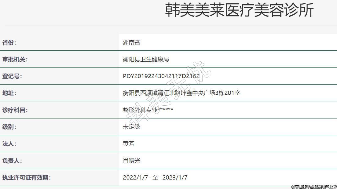 衡陽韓美美萊醫(yī)療美容2019年09月10日成立,地址:衡陽縣西渡鎮(zhèn)清江北路坤鑫中央廣場3棟201室,診療科目:整形外科專業(yè)******