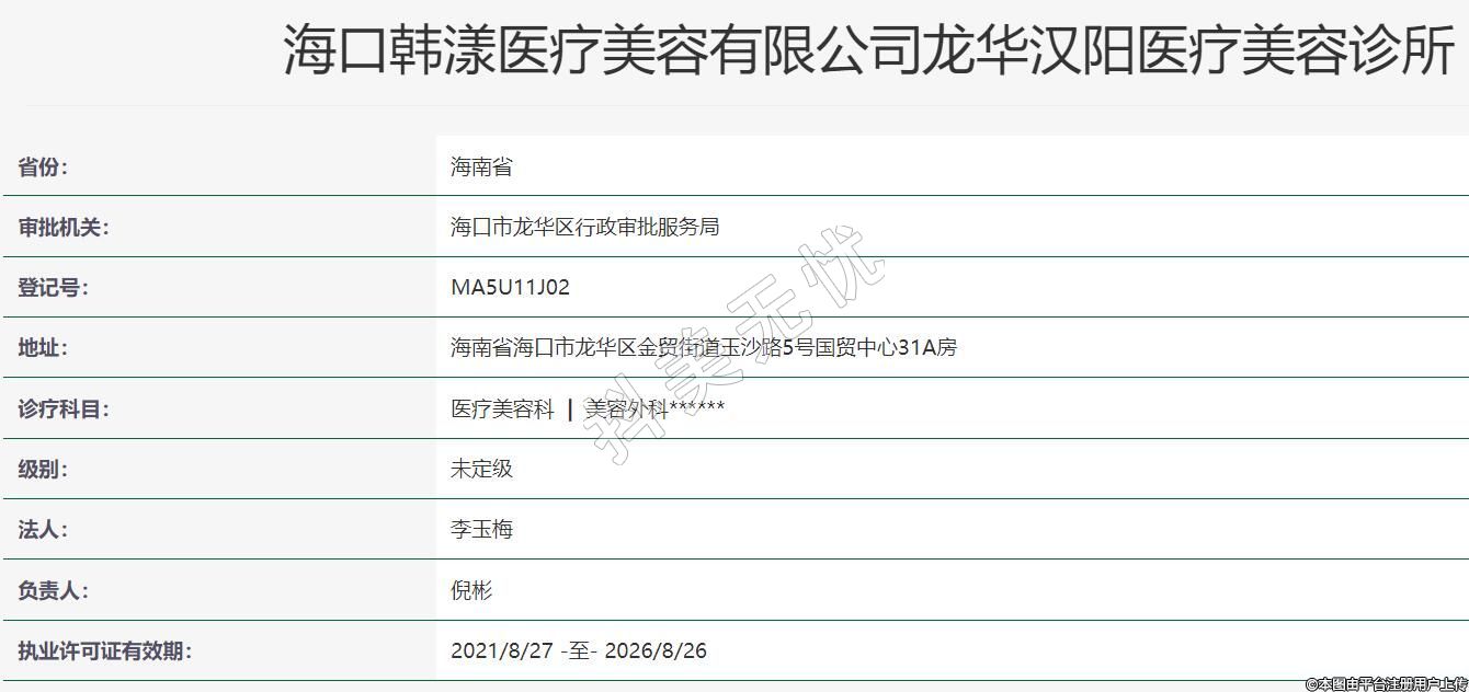 海口韓漾醫(yī)療美容有限公司龍華漢陽醫(yī)療美容診所