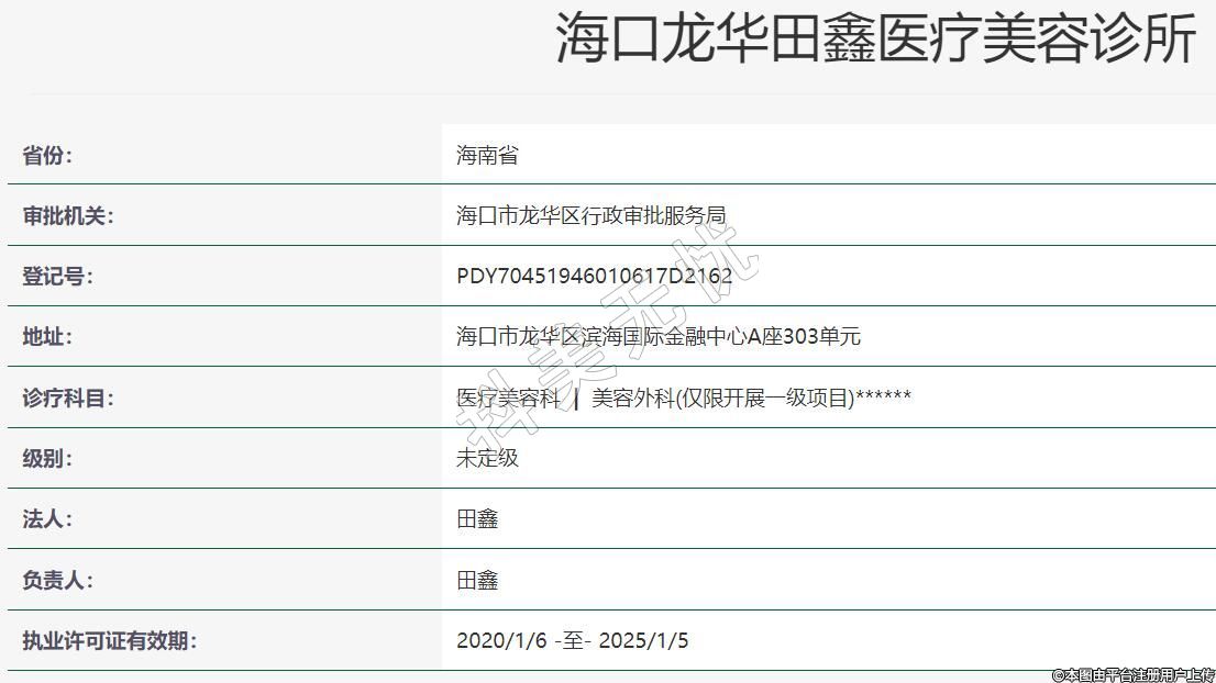 海口田鑫醫(yī)療美容地址:??谑旋埲A區(qū)濱海國際金融中心A座303單元,診療科目:醫(yī)療美容科 | 美容外科(僅限開展一級項(xiàng)目)******