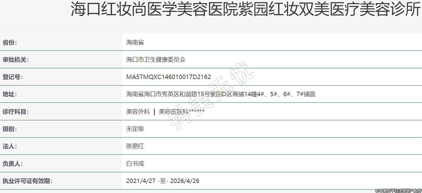 海口紅妝尚醫(yī)學美容醫(yī)院有限公司紫園紅妝雙美醫(yī)療美容診所, 成立于2020年, 位于海南省??谑? 是一家以從事衛(wèi)生為主的企業(yè)。