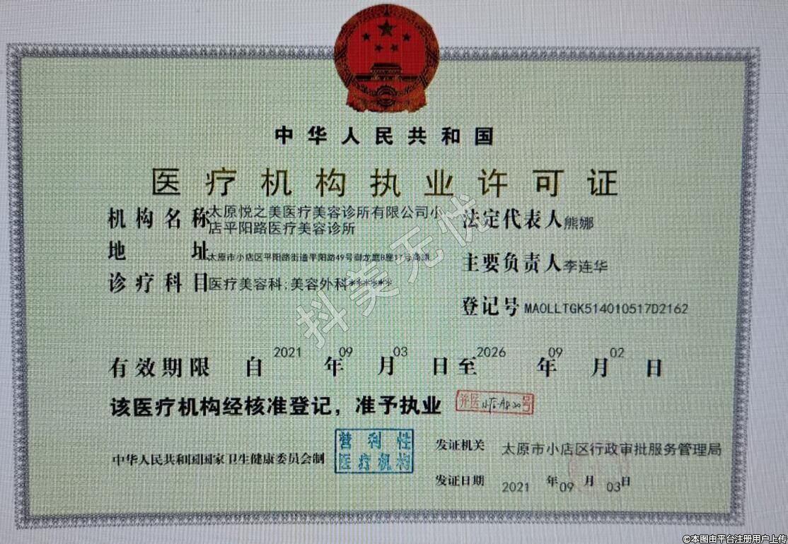 機構名稱:太原悅之美醫(yī)療美容診所有限公司小店平陽路醫(yī)療美容診所