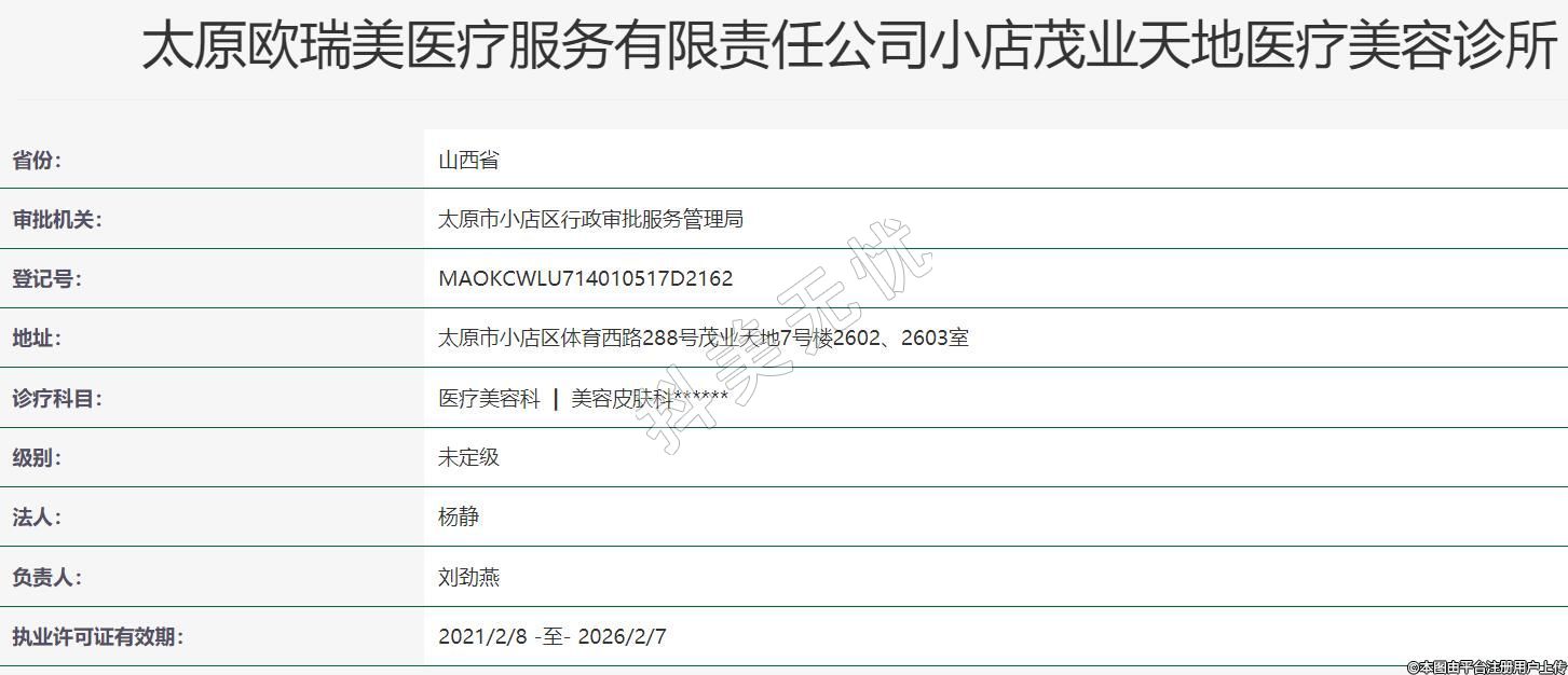 太原歐瑞美醫(yī)療服務(wù)有限責(zé)任公司小店茂業(yè)天地醫(yī)療美容診所