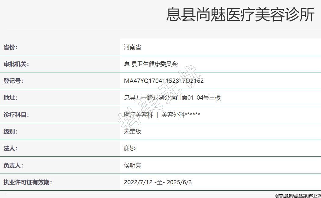 信陽(yáng)尚魅醫(yī)療美容診所,成立于2020年1月7日,位于河南省信陽(yáng)市息縣五一路龍湖公館門面01-04號(hào)三樓,科室范圍為醫(yī)療美容科美容外科。