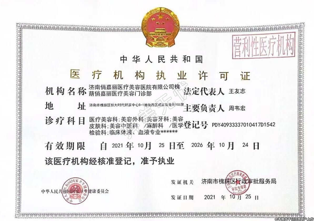 機(jī)構(gòu)名稱:濟(jì)南俏嘉麗醫(yī)療美容醫(yī)院有限公司槐蔭俏嘉麗醫(yī)療美容門診部