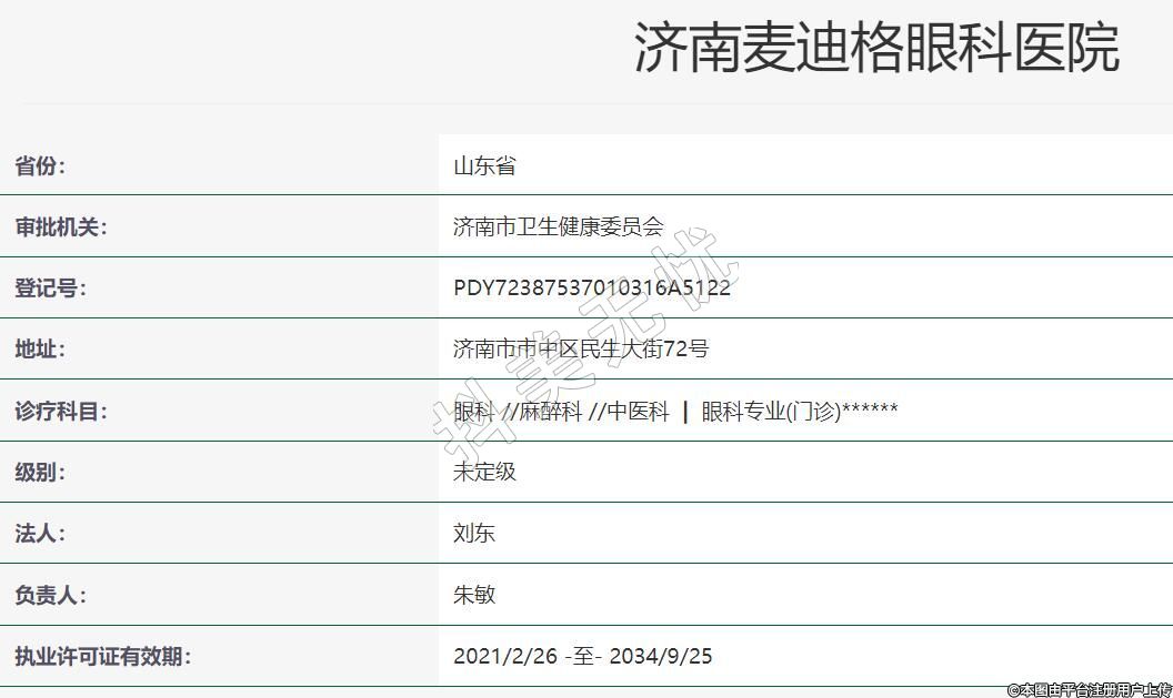濟(jì)南麥迪格眼科2019-07-09成立,地址:濟(jì)南市市中區(qū)民生大街72號(hào),診療科目:眼科 //麻醉科 //中醫(yī)科 | 眼科專業(yè)(門診)******