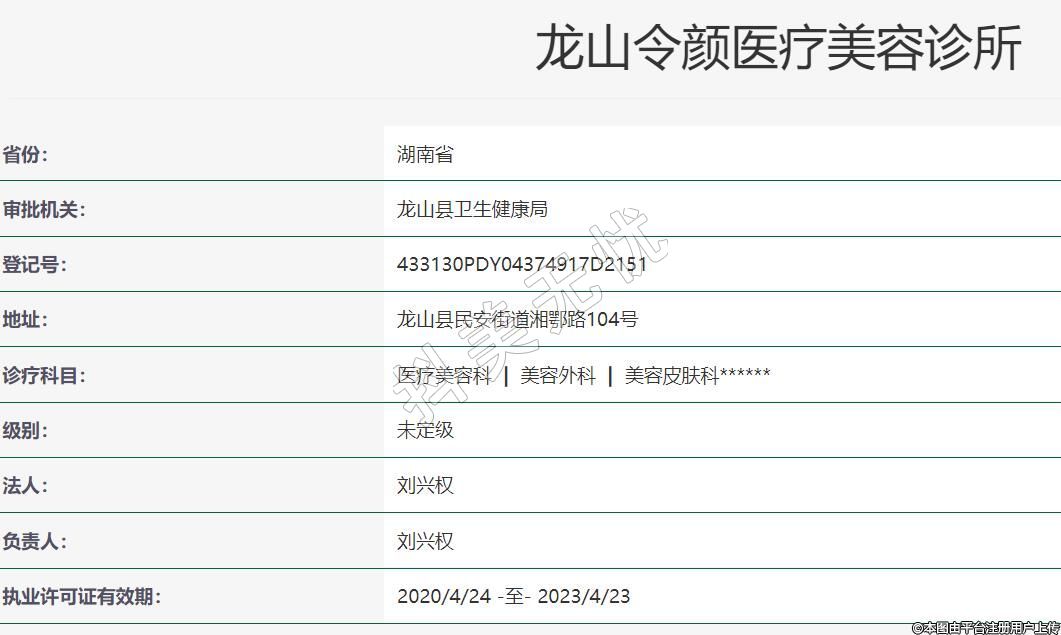 龍山令顏醫(yī)療美容2019年12月27日成立,地址:龍山縣民安街道湘鄂路104號,診療科目:醫(yī)療美容科 | 美容外科 | 美容皮膚科******