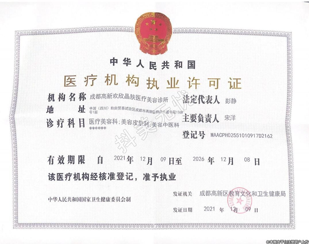 機構(gòu)名稱:成都高新歡欣晶膚醫(yī)療美容診所