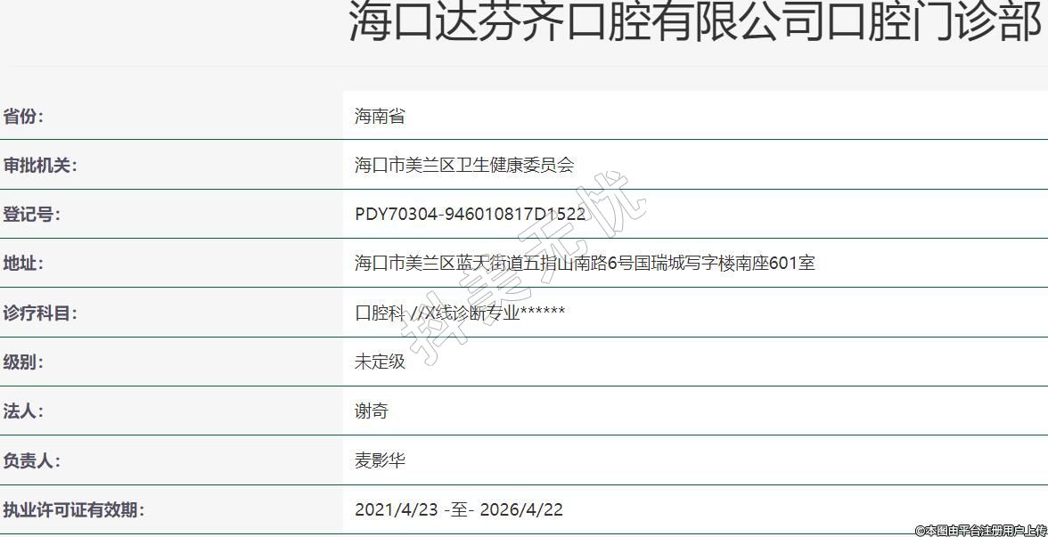 海口達(dá)芬齊口腔有限公司口腔門診部