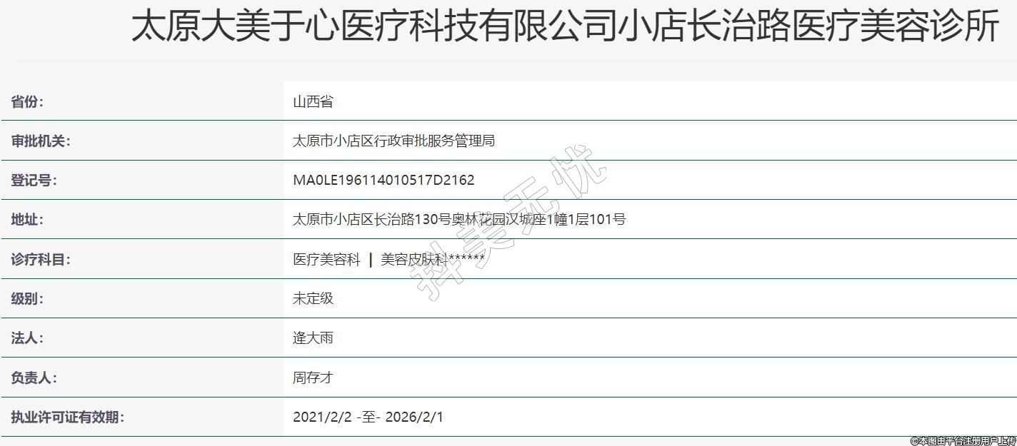 太原大美于心醫(yī)療科技有限公司小店長治路醫(yī)療美容診所