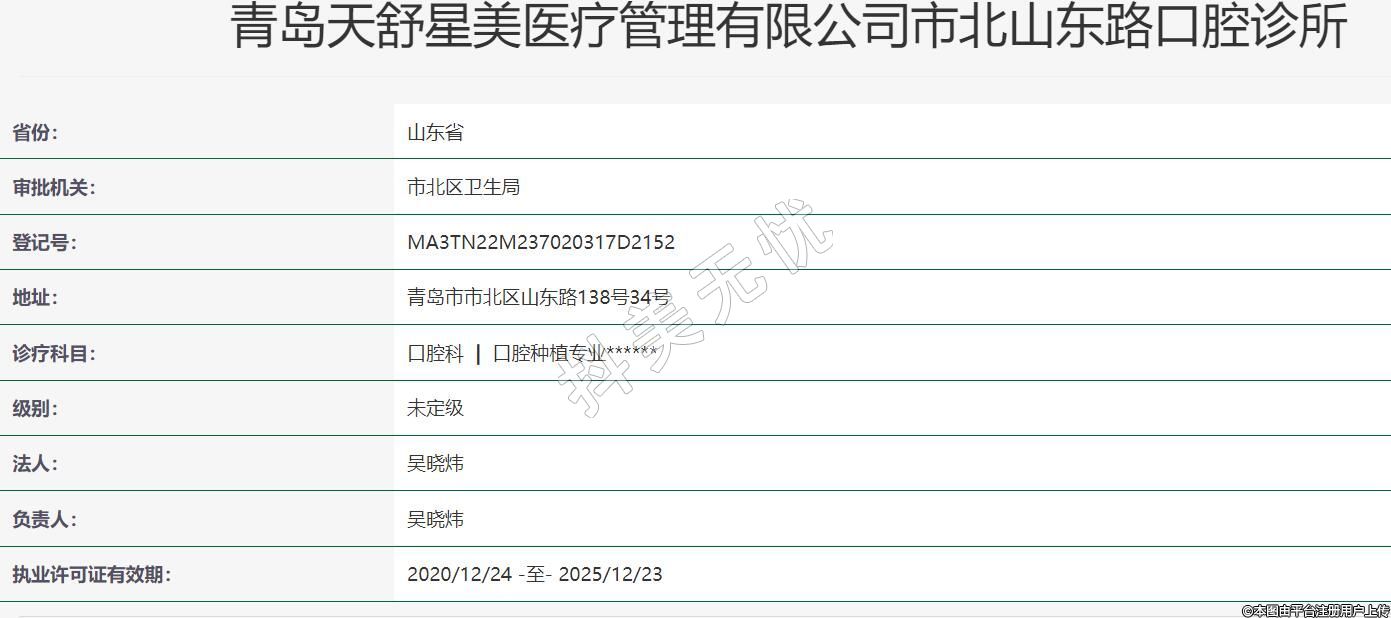 青島天舒星美醫(yī)療管理有限公司市北山東路口腔診所