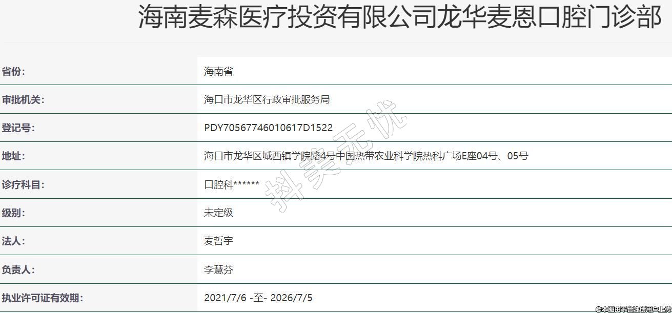 海南麥森醫(yī)療投資有限公司龍華麥恩口腔門(mén)診部