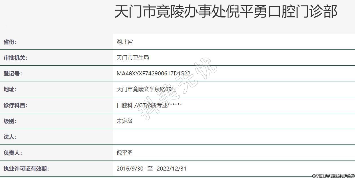 天門(mén)市竟陵辦事處倪平勇口腔門(mén)診部