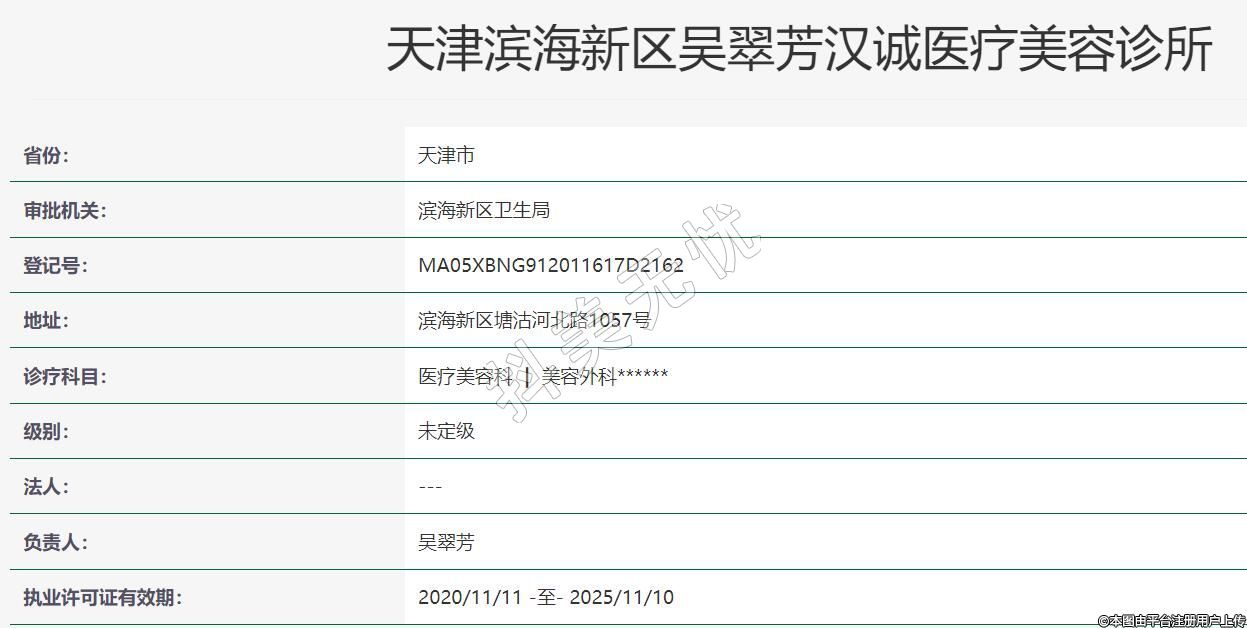 天津?yàn)I海新區(qū)吳翠芳漢誠(chéng)醫(yī)療美容診所