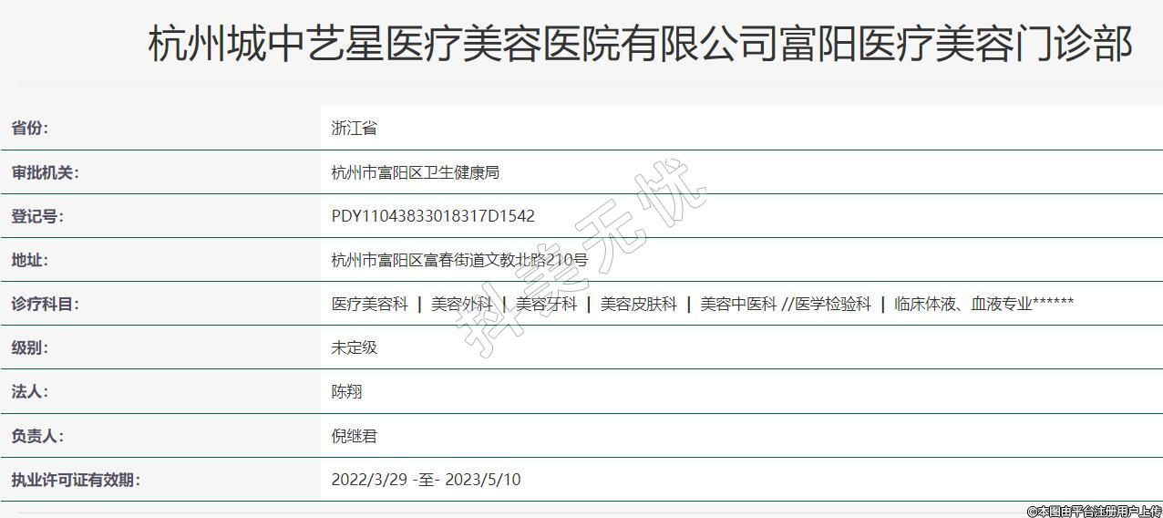 杭州城中藝星醫(yī)療美容醫(yī)院有限公司富陽醫(yī)療美容門診部