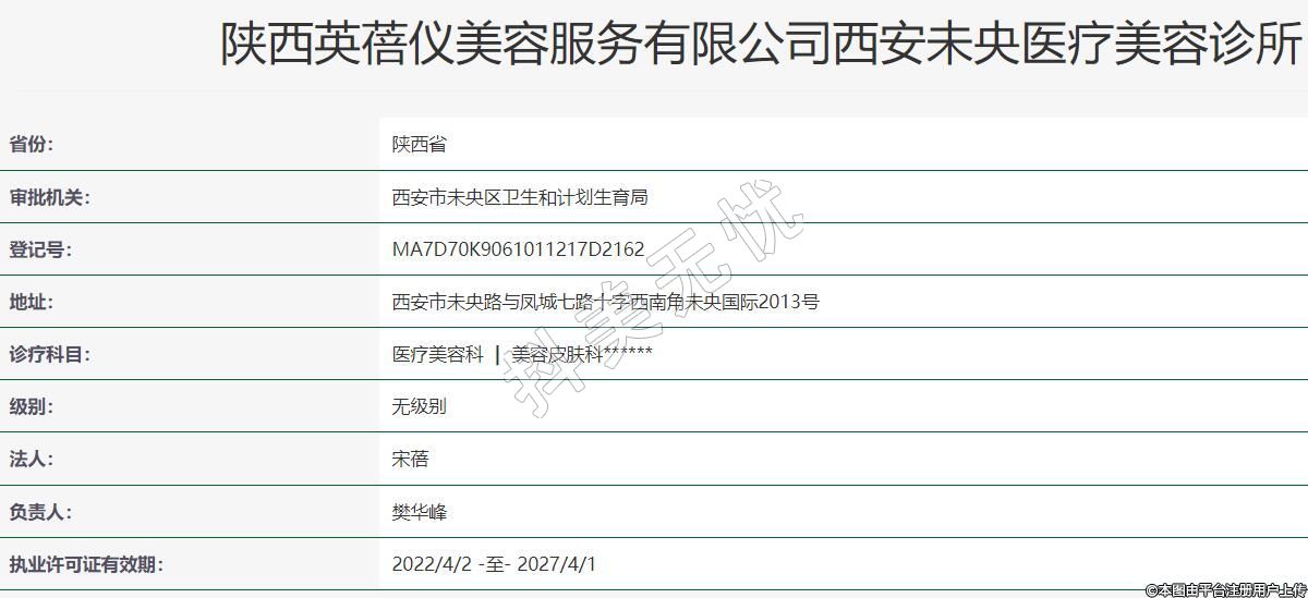 陜西英蓓儀美容服務(wù)有限公司西安未央醫(yī)療美容診所