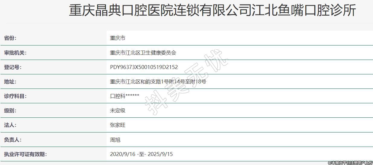 重慶晶典口腔醫(yī)院連鎖有限公司江北魚(yú)嘴口腔診所