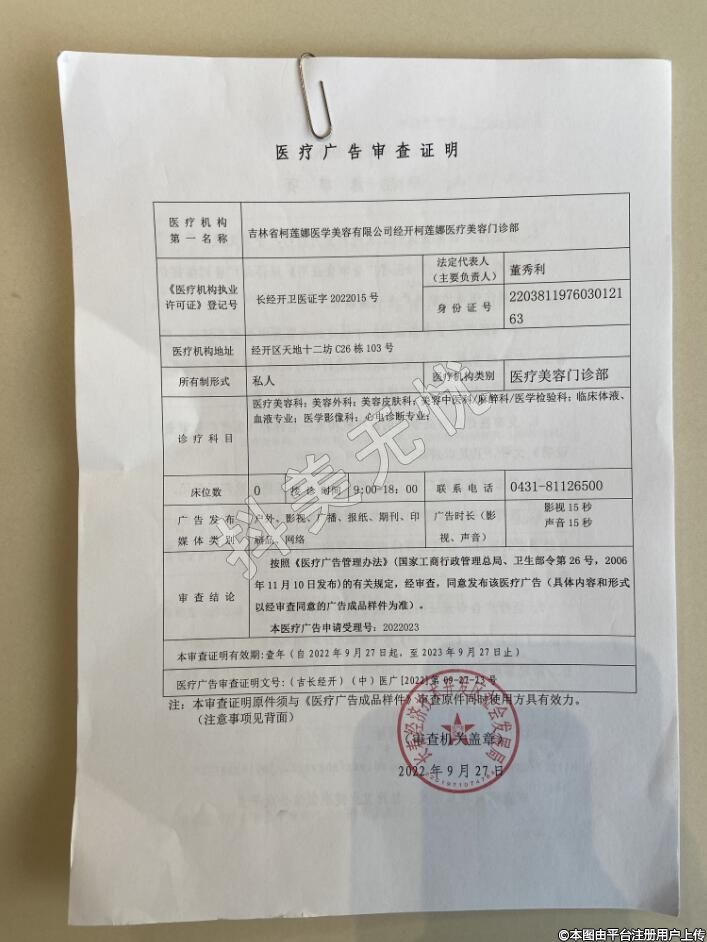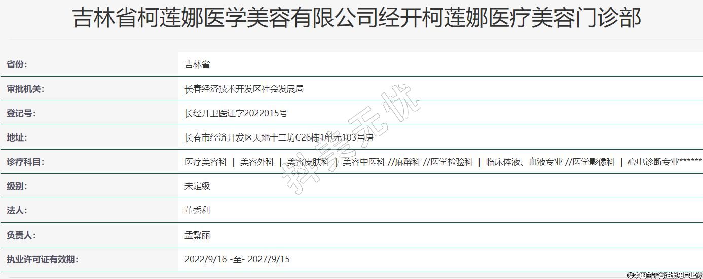 吉林省柯蓮娜醫(yī)學(xué)美容有限公司經(jīng)開(kāi)柯蓮娜醫(yī)療美容門診部