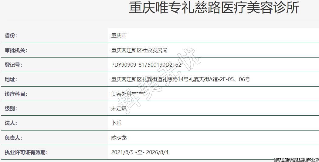 重慶唯專禮慈路醫(yī)療美容2021-07-01成立,地址:重慶兩江新區(qū)禮嘉街道禮慈路14號禮嘉天街A館-2F-05、06號,診療科目:美容外科******