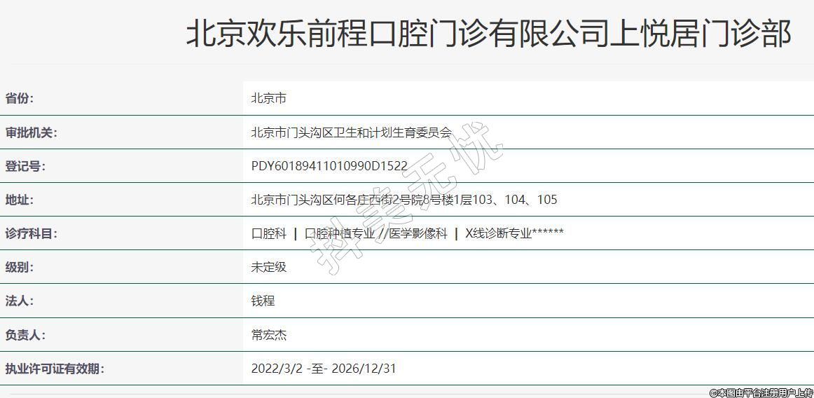 北京歡樂前程口腔門診有限公司上悅居門診部