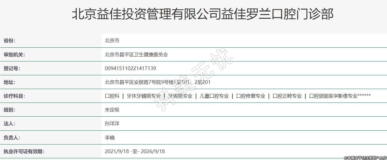 北京益佳投資管理有限公司益佳羅蘭口腔門診部
