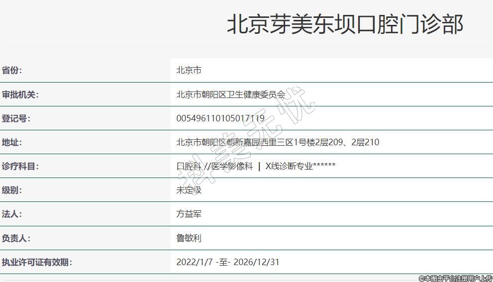 北京芽美東壩口腔2021-03-09成立,地址:北京市朝陽區(qū)朝新嘉園西里三區(qū)1號樓2層209、2層210,診療科目:口腔科 //醫(yī)學(xué)影像科 | X線診斷專業(yè)******