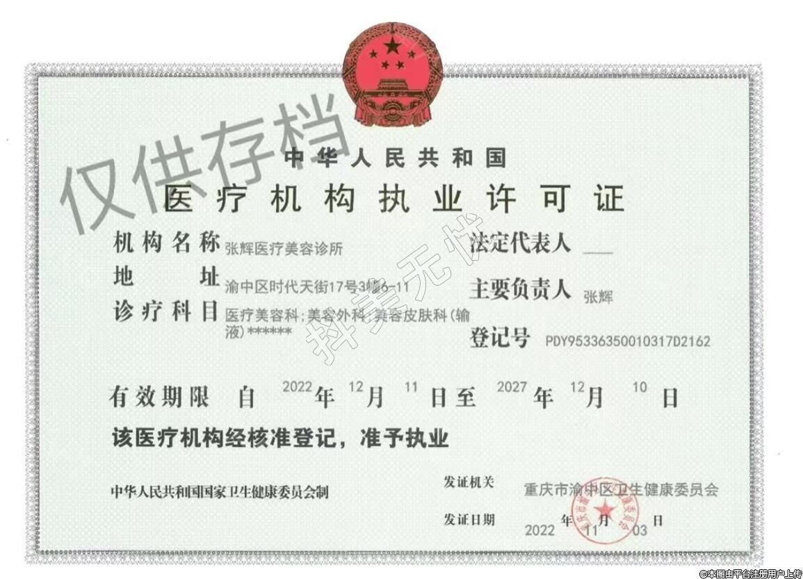 發(fā)證機(jī)關(guān):重慶市渝中區(qū)衛(wèi)生健康委員會(huì)