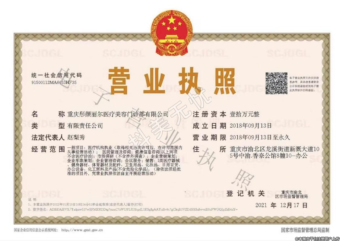 發(fā)證機關:重慶市渝北區(qū)衛(wèi)生健康委員會