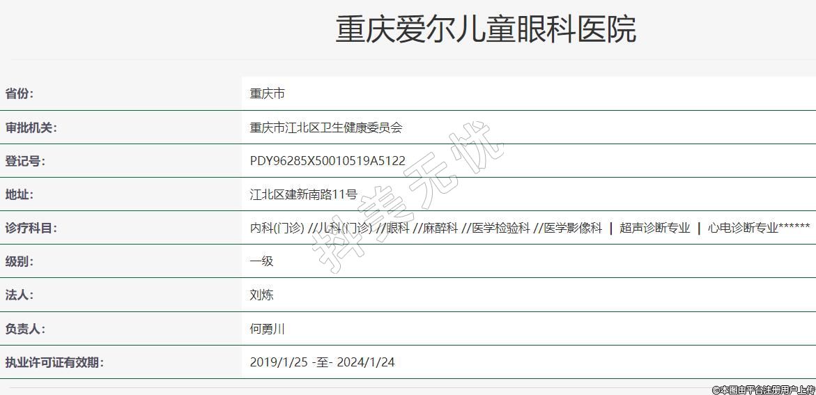 重慶愛爾兒童眼科2018-06-13成立,地址:江北區(qū)建新南路11號,診療科目:內(nèi)科(門診) //兒科(門診) //眼科 //麻醉科 //醫(yī)學(xué)檢驗科 //醫(yī)學(xué)影像科 | 超聲診斷專業(yè) | 心電診斷專業(yè)******