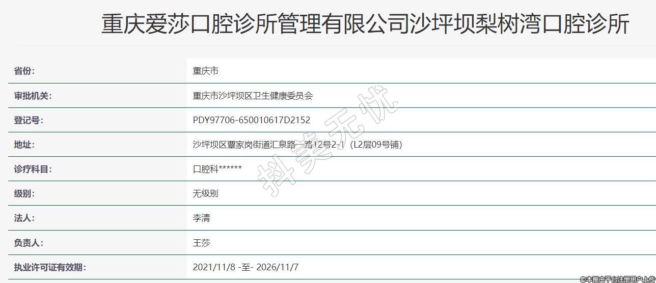 重慶愛莎口腔診所管理有限公司沙坪壩梨樹灣口腔診所