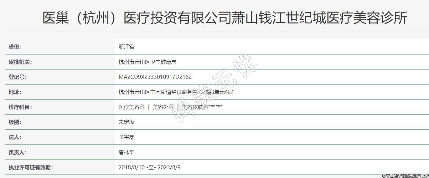 醫(yī)巢(杭州)醫(yī)療投資有限公司蕭山錢江世紀城醫(yī)療美容診所