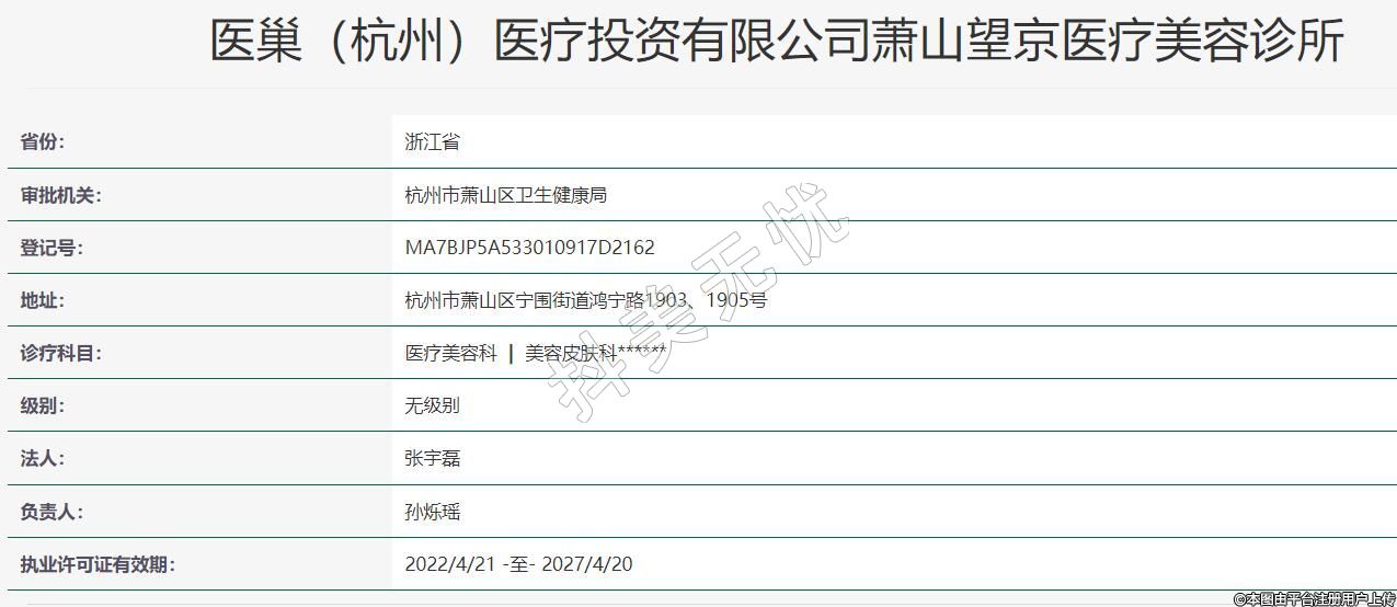 醫(yī)巢(杭州)醫(yī)療投資有限公司蕭山望京醫(yī)療美容診所