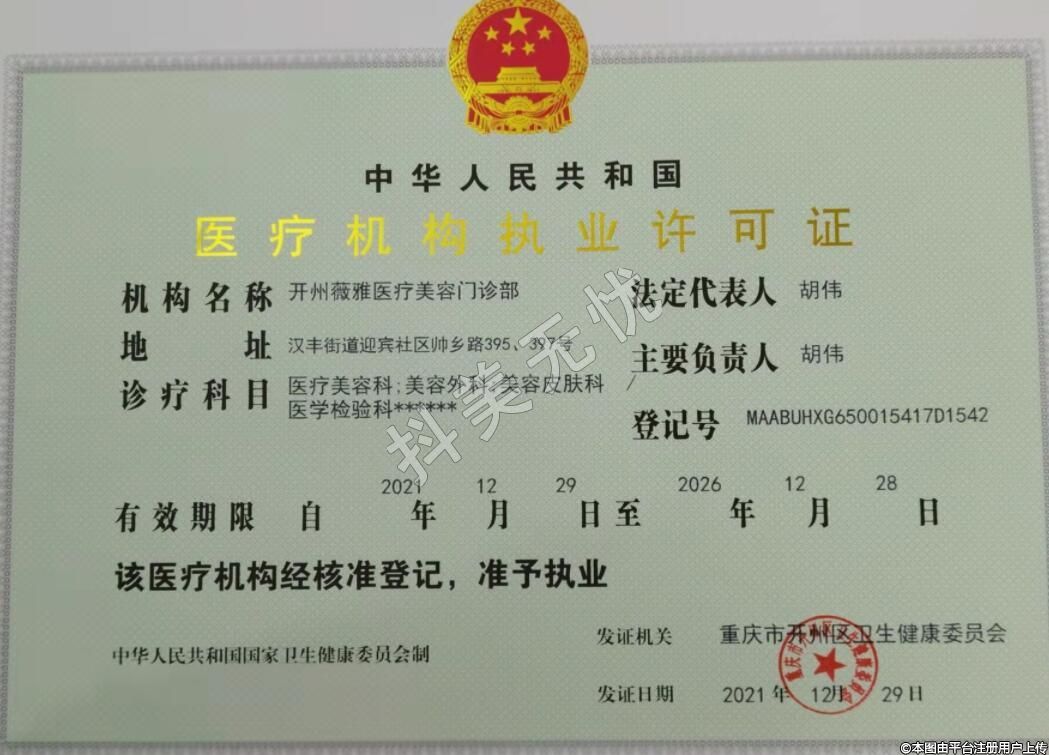 機(jī)構(gòu)名稱(chēng):開(kāi)州薇雅醫(yī)療美容門(mén)診部