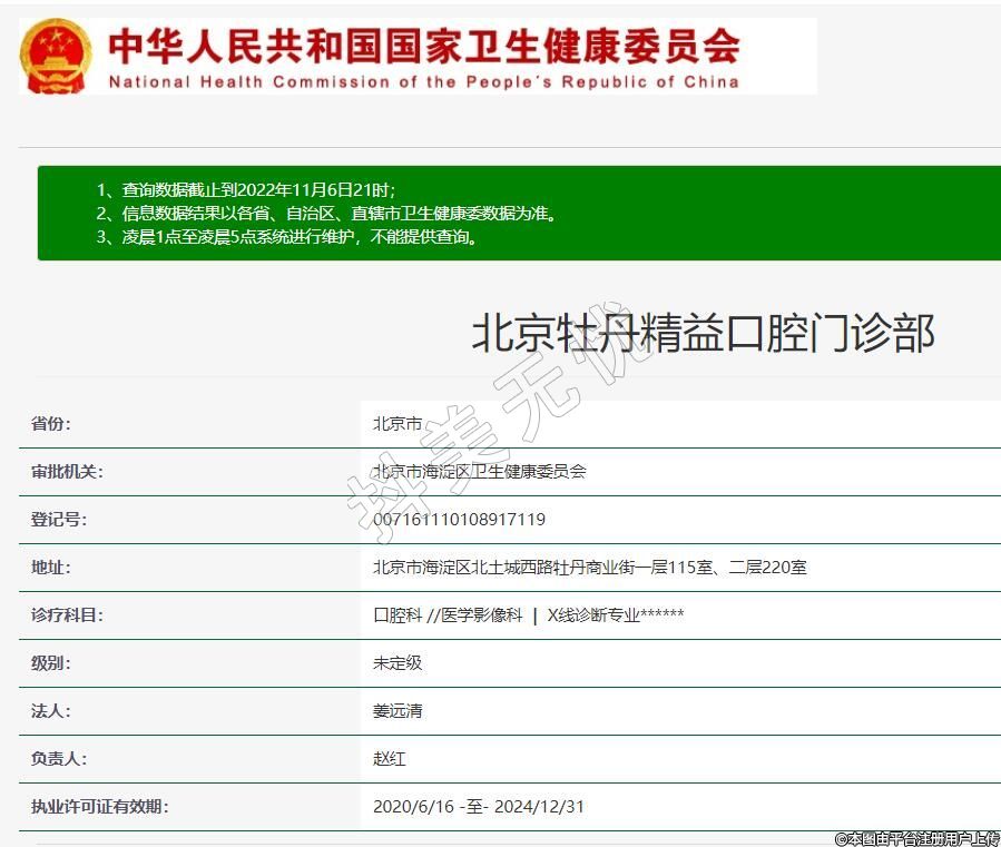 北京牡丹精益口腔2020-01-19成立,地址:北京市海淀區(qū)學府樹家園四區(qū)1號樓1層1-1,診療科目:口腔科 //醫(yī)學影像科 | X線診斷專業(yè)******
