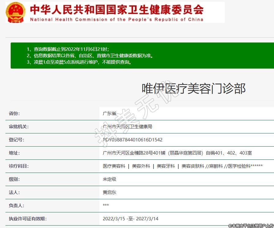 廣州唯伊醫(yī)療美容 ,是一家經國家衛(wèi)生部正式批準開業(yè),廣州市衛(wèi)生局屬下的一家正規(guī)的專業(yè)整形醫(yī)療機構,證件齊全,是家集研發(fā)、生產、健康管理、醫(yī)學美容等服務為一體的高端醫(yī)學美容服務機構。